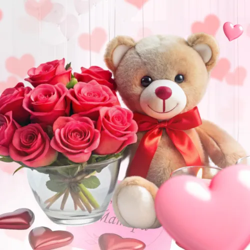 Букет роз с мягкой игрушкойПодарочный набор 4