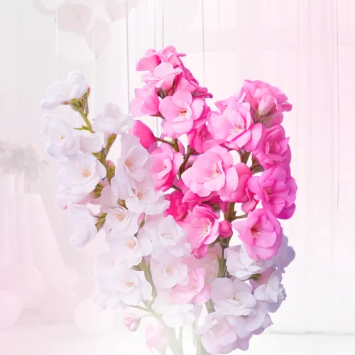 • Премиум - роза - 9 шт., альстромерия - 4 шт., эустома - 4 шт., зелень, упаковка, лента