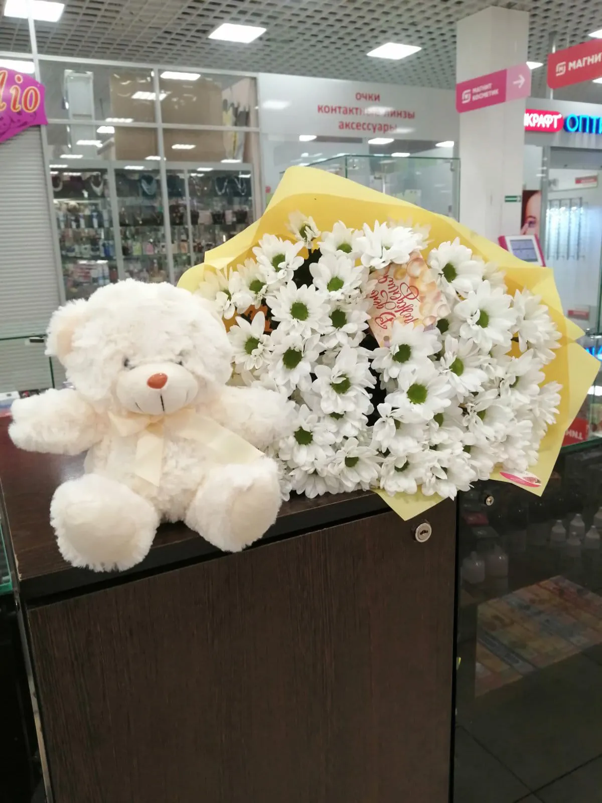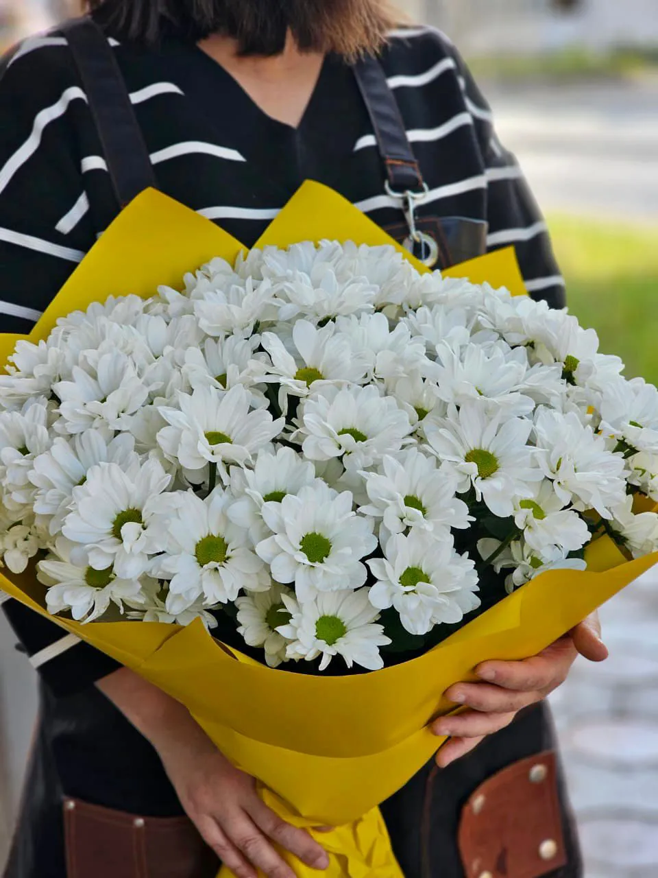 Букетом из белых ромашковых хризантем вы всегда сможете порадовать любимого человека. В любое время года этот букет принесет весеннее настроение. Легкость и приятные чувства обеспечены.