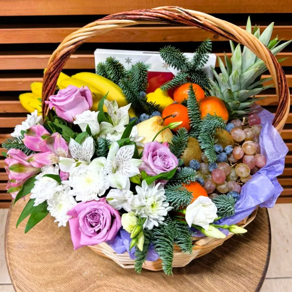 Погрузитесь в атмосферу праздника с нашей великолепной новогодней корзиной, наполненной свежими фруктами и удивительными цветами. Это идеальный подарок для вашего близкого человека, который подчеркнёт вашу заботу и внимание. Каждая наша корзина создаётся с учётом лучших традиций и пожеланий, чтобы стать прекрасным подарком для родных и близких. Закажите новогоднюю корзину с фруктами и цветами и сделайте праздник незабываемым!