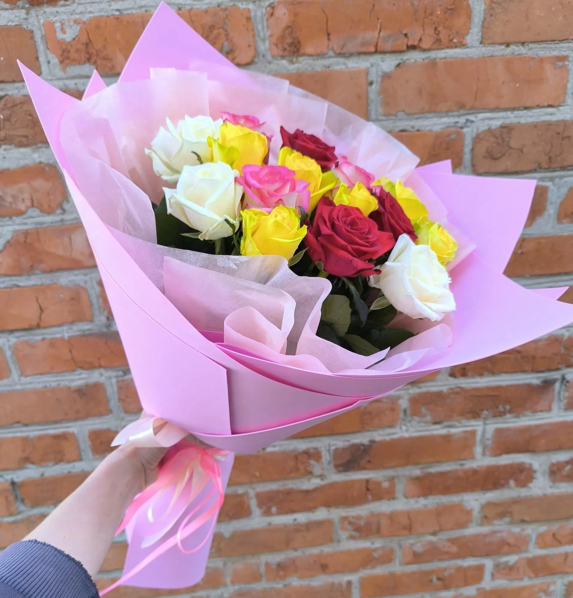 Розы, символизирующие любовь и красоту, в этом букете собраны в гармоничное единство, где каждый цвет рассказывает свою историю