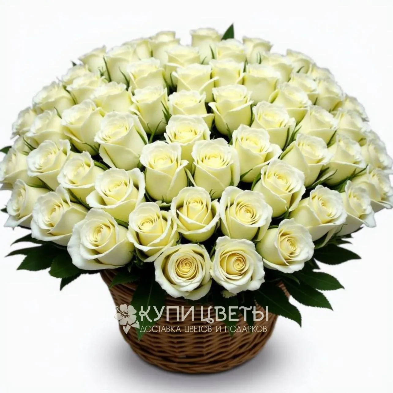 101 белая роза: Воплощение благородства и чистоты в царственной корзине!