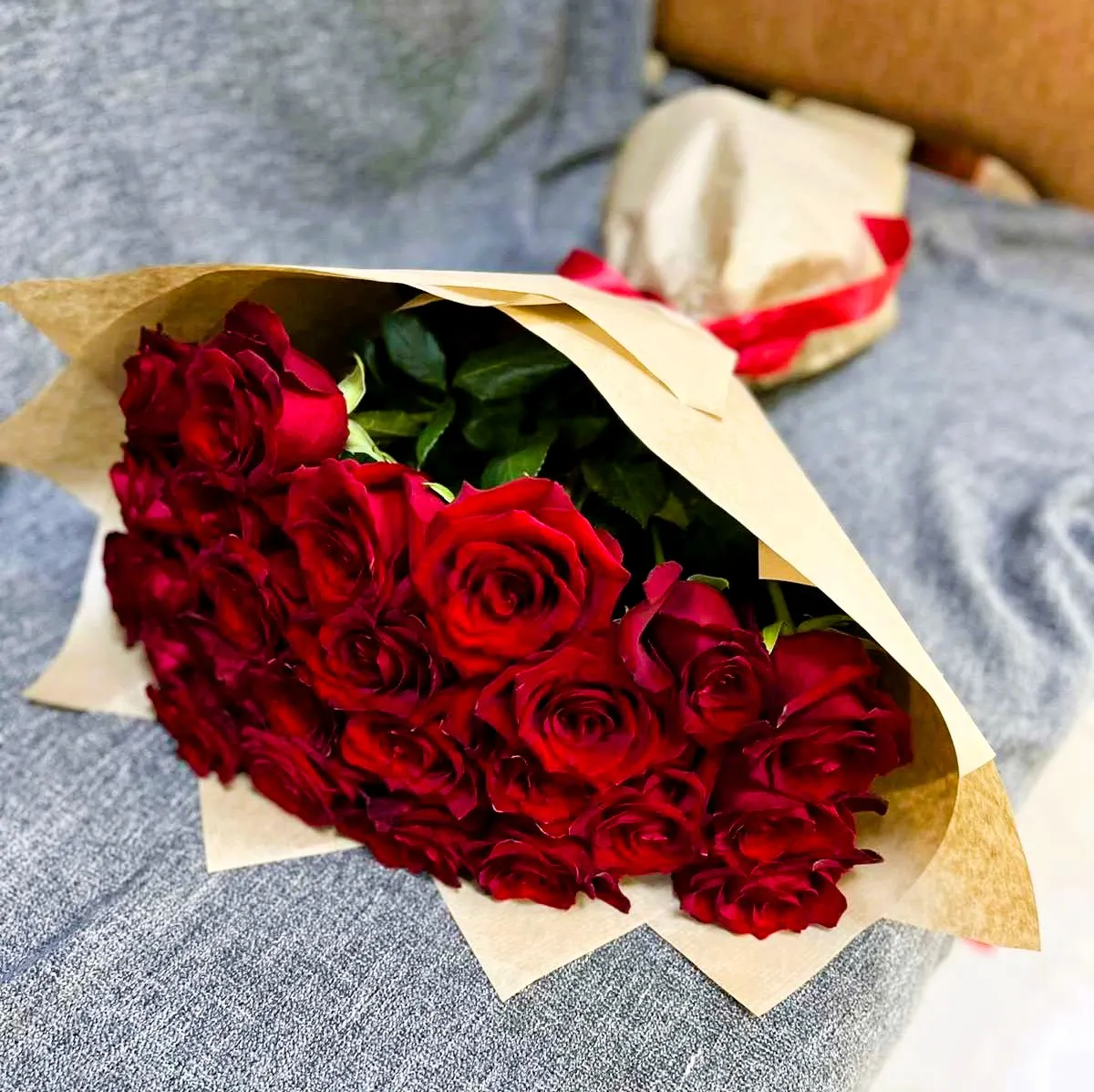 Букет из красных роз – это воплощение любви и страсти, символ нежности и романтики. Каждая роза в этом роскошном букете, словно поцелуй, насыщенный ярким цветом и утонченным ароматом. Глубокие, насыщенные красные лепестки, окутанные зелеными густыми листьями, создают гармоничную композицию, которая притягивает взгляды и наполняет пространство теплом.