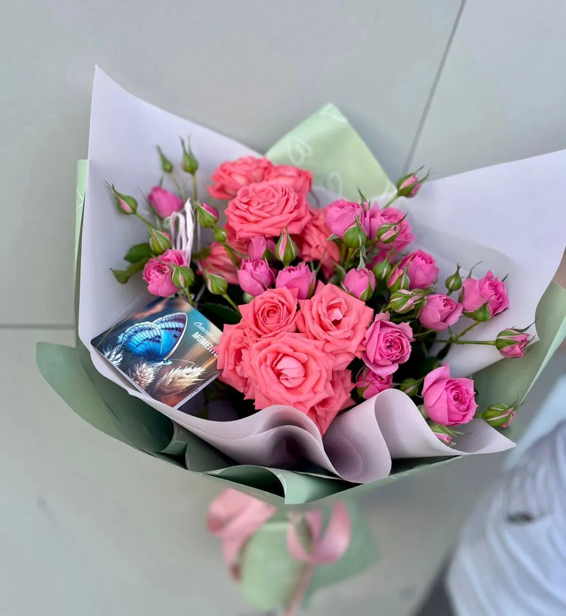 • Средний - роза кустовая - 9 шт., упаковка, лента